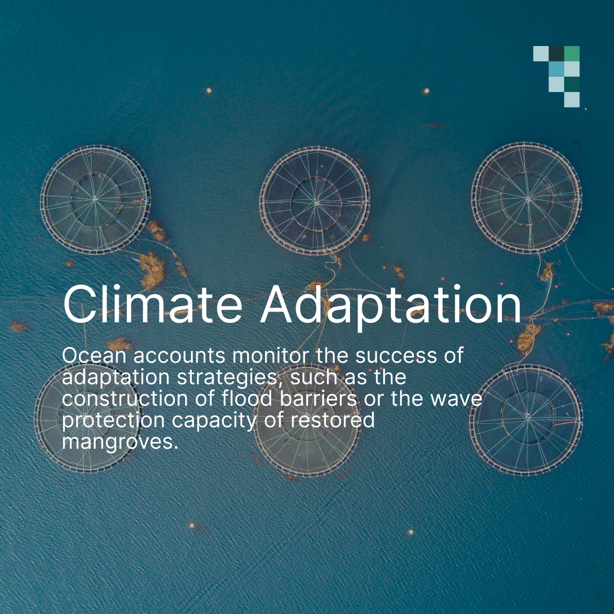 Thus, ocean accounting provides a valuable framework to support 1) the monitoring of climate change implications, 2) environmental, societal and economic adaptation to a changing world, 3) the identification and management of climate change drivers (including climate mitigation) and 4) a sustainable, equitable and adaptative ocean governance approach.