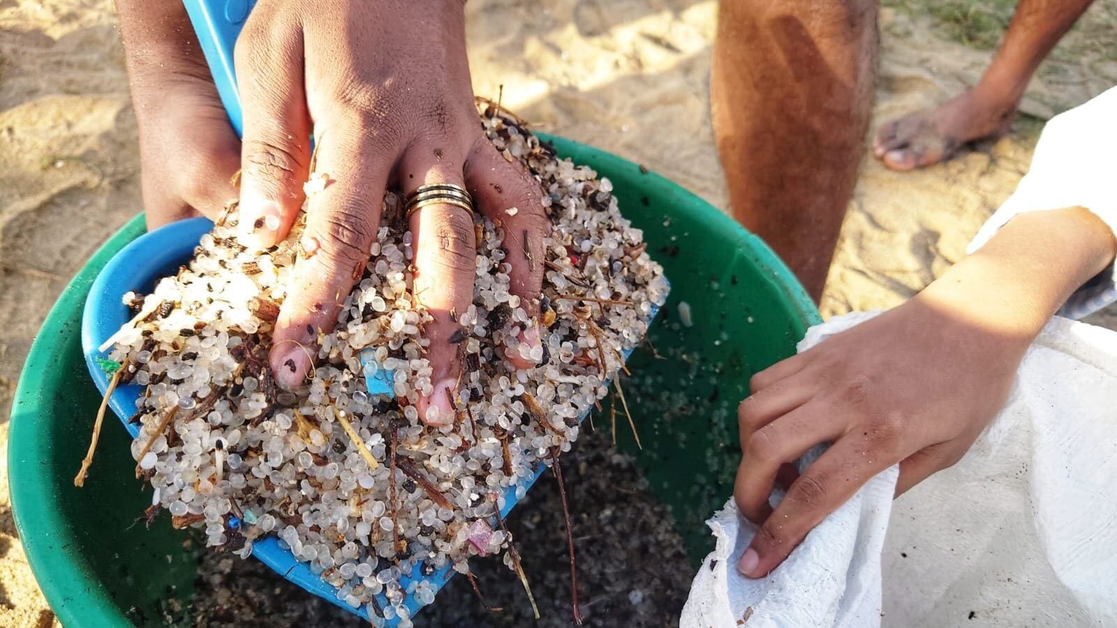 Four years after the X-Press Pearl disaster, volunteer groups like the Pearl Protectors continue their cleanup efforts, manually removing plastic nurdles still buried deep in Sri Lankan beaches. Photograph: The Pearl Protectors